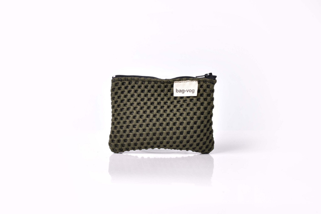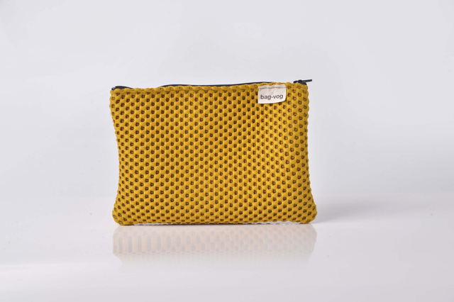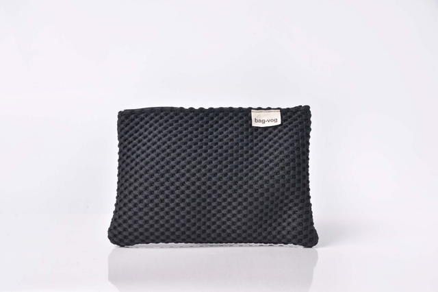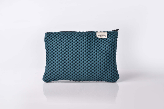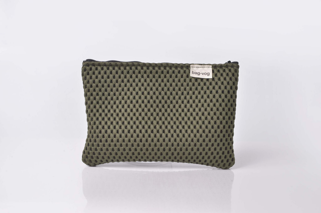 Neceser plano tejido de tapiceria, con cremallera superior.